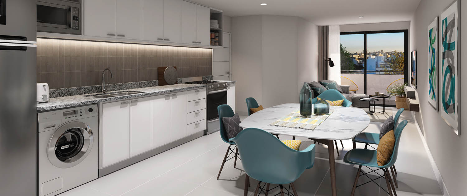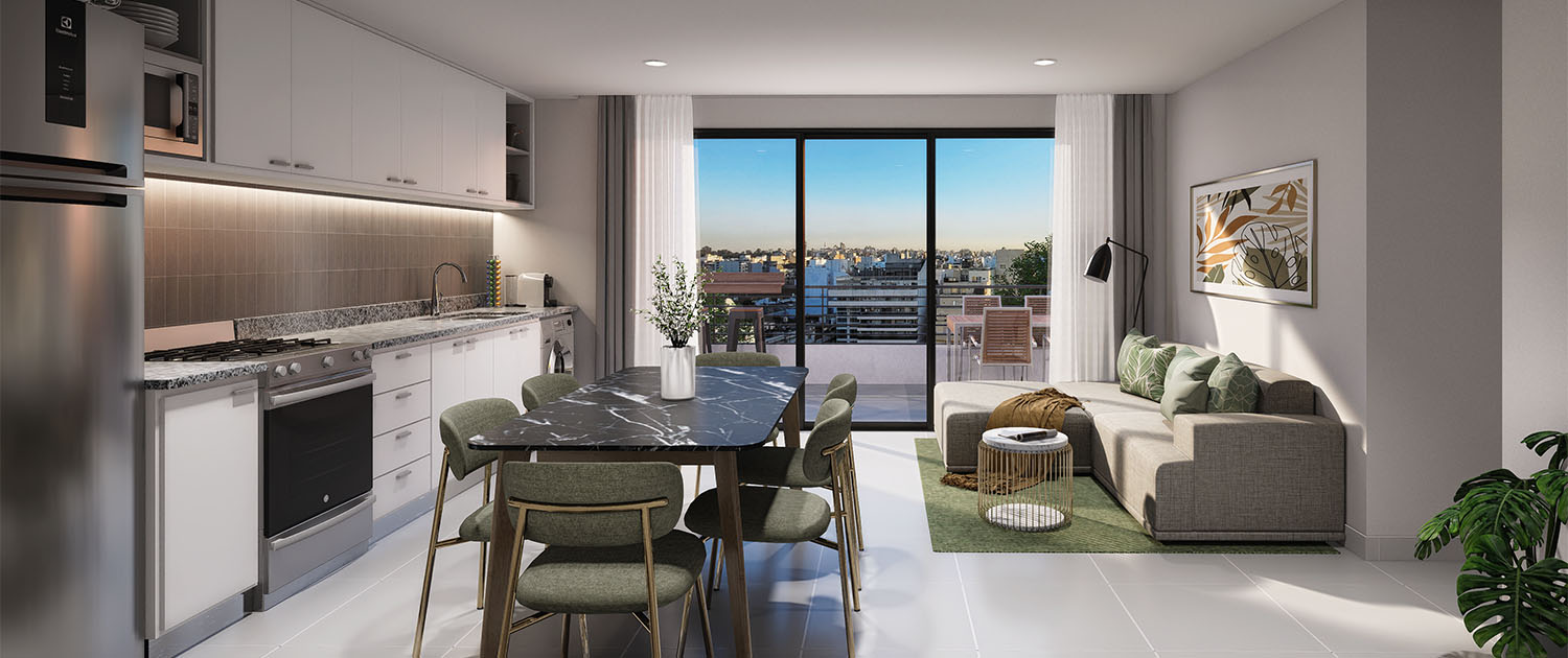 Modernos y amplios departamentos de 1 y 2 dormitorios con balcón y terraza.